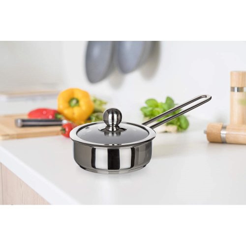 Nerezový rendlík PICCOLO, se skleněnou poklicí, lze používat na všechny typy varných desek včetně indukce.