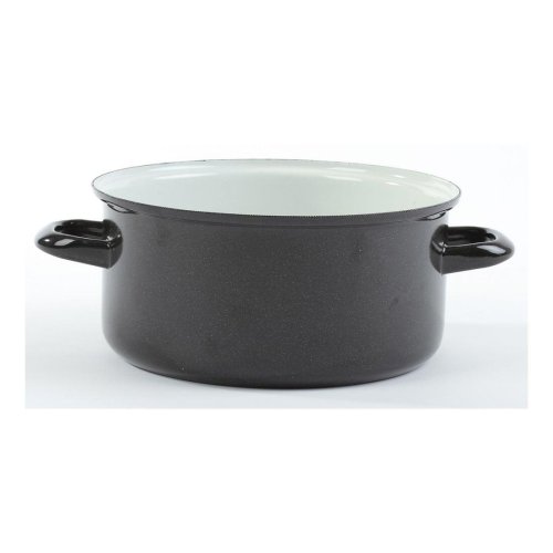 objem: 0,8 l průměr: 14 cm výška: 7 cm síla plechu: 1-1,2 mm vnitřní barva: bílý granit vnější barva: černá s bílou pihou