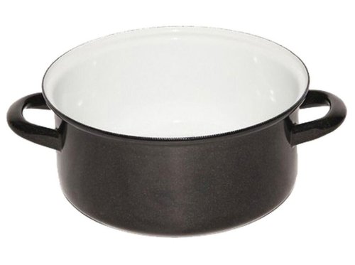 objem: 8 l průměr: 28 cm výška: 15,5 cm síla plechu: 1-1,2 mm vnitřní barva: bílý granit vnější barva: černá s bílou pihou