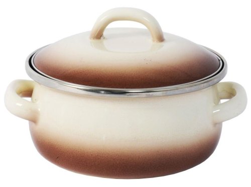 Nádobí v designu Capuccino je stálicí na českém trhu a jistě potěší milovníky klasiky, kteří upřednostňují decentní vzhled nádobí před nádobí s výrazným dekorováním. Na venkovní straně nádobí Capuccino je použita líbivá kombinace béžového a hnědého smaltu s postupným přechodem mezi oběma zmíněnými barvami. Uvnitř tohoto nádobí je nanesen vysoce odolný hnědý smalt, jež je mnohem odolnější proti zašpinění, než povrchy světlejších barev.