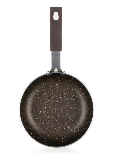 Hliníkový presovaný mini rendlík GRANITE Brown s vnitřním 2vrstvým nepřilnavým povrchem v hnědé mramorové struktuře. Vnější povrch je opatřen 2vrstvým žáruvzdorným nástřikem v hnědé mramorové barvě. Rendlík není vhodný na indukci.