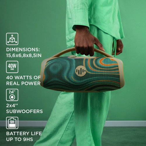 Reproduktor Stromberg FORCE – silný výkon, promyšlený design a zvuk, který strhne pozornost. Výkon 40 W RMS a dvě 4" basové jednotky zajistí hluboké basy a čisté výšky. Díky výdrži baterie až 9 hodin si užijete hudbu bez přerušení a moderní design, který vznikl ve spolupráci s uznávaným designérem Agustem, dodává reproduktoru styl. Je to prostě parťák na každou párty, k bazénu i pro poslech v pohodlí domova.