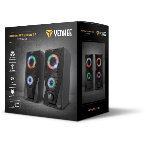 Stolní 2kanálová reprosoustava Yenkee YSP 2003RGB a s integrovaným podsvícením zaručeně zapadne do každého herního koutku,
