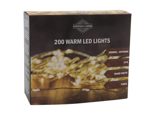 ŘETĚZ 200LED TEPLÁ 10M IP44 ČASOVAČ 10M