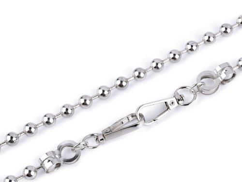 Kovový kuličkový řetízek využijete na menší kabelky, psaníčka či pouzdra na mobilní telefony. Na obou jeho koncích najdete připevněné karabinky. Řetízek není určený na velkou zátěž.