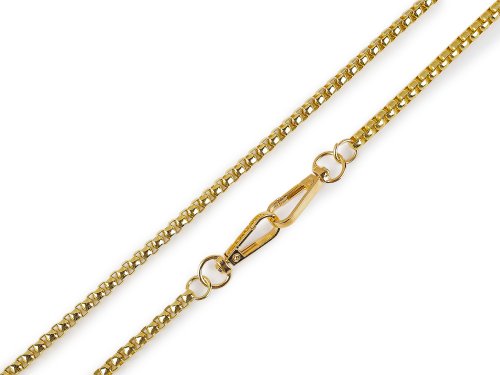 Designový kovový řetízek využijete na menší kabelky, psaníčka nebo pouzdra na mobilní telefony. Na obou jeho koncích najdete připevněné karabinky. Řetízek není určený na velkou zátěž.