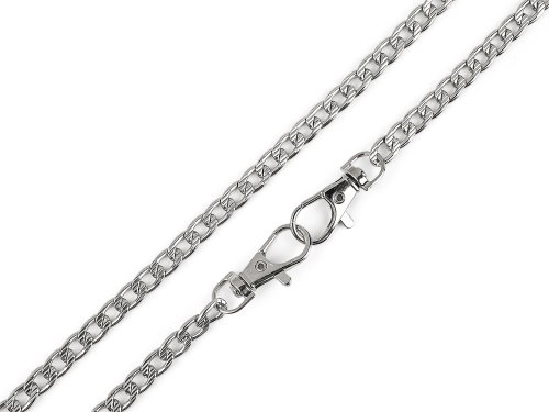 Řetízek na kabelky je zajímavým svým povrchem, který zdobí reliéf. Očka jsou oválná. Řetízek má na každé straně karabinku.