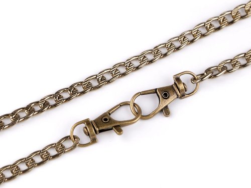 Řetízek [na kabelky] je zajímavým svým povrchem, který zdobí reliéf. Očka jsou oválná. Řetízek má na každé straně karabinku. Není určený na velkou zátěž.