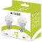 Ekonomická sada 2ks LED žárovek Příkon 12 W (2x12 W) Populární náhrada za vláknovou žárovku: 83 W Světelný tok 1200lm Běžná objímka E27 12000 spínacích cyklů Tvar klasické žárovky A60 Barva světla: 3000K teplábílá Vyzařovací úhel: 200° Rozměry: 11060mm (dØ)