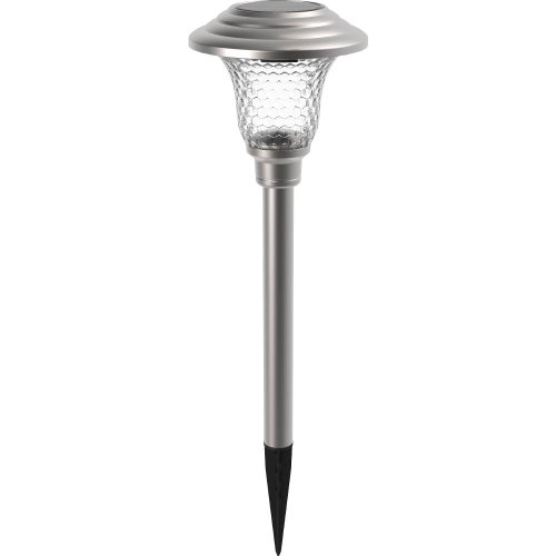 Solární zahradní zapichovací svítidlo Barva těla: nerez Materiál: nerez, sklo, plast 1x LED (SMD) studená bílá 0,3W polykrystalický solární článek NiMh akumulátor 900mAh AA Patice: pevně vestavěné LED Doba svícení: >8 hodin Barva světla 5000K Třída ochrany: IP44 Rozměry: 120120420 (šxhxv) Světelný tok 10 lm
