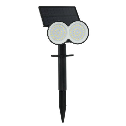 Barva těla: černá Materiál: plast 56x LED (2835 SMD) Polykrystalický solární článek s nastavitelnýmúhlem Li-Ion akumulátor 1200mAh 3.7V (18650) Patice: pevně vestavěné LED Doba svícení: >8 hodin Barva světla 3300K - teplá bílá Třída ochrany: IP44 Rozměry: 127x143x305mm