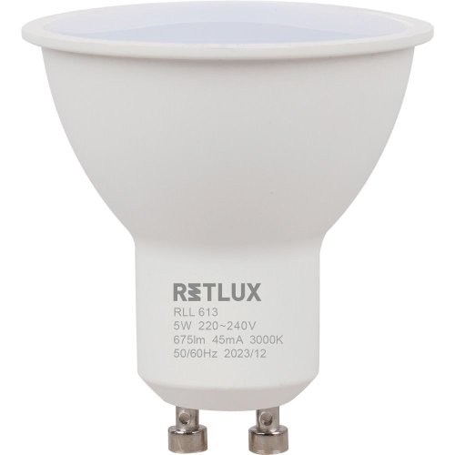 LED žárovka reflektorová Klasický tvar 5 W Populární náhrada za vláknovou žárovku 52 W Energetická třída D Patice GU10 220-240V 3000K - teplá bílá Životnost více než 25000h Světelný tok: 675 lm Rozměry: 5550mm (dØ)