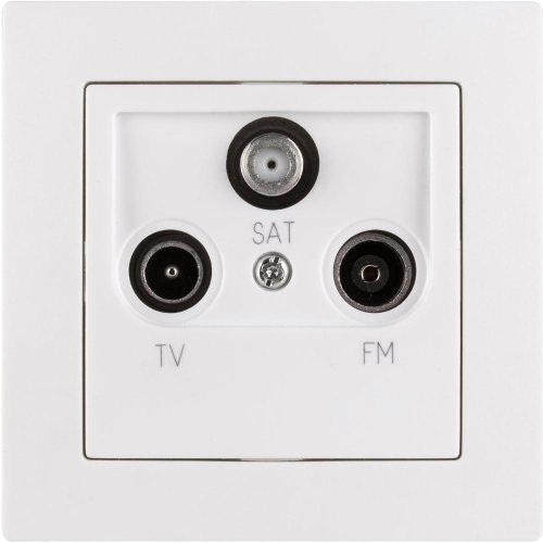 Zásuvka TV+R+SAT řady AMY s rámečkem, průběžná Zásuvka pro zapojení anténních kabelů televize, radia nebo satelitu Bílá barva
