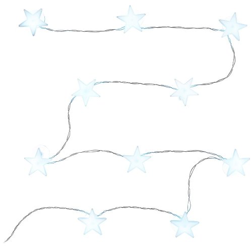 Hvězdy 10LED s přísavkami Celková délka kabelu: 1,8 m Délka osvětleného kabelu: 1,5 m Délka přívodní šňůry: 0,3 m Počet LED: 10 Barva světla: studená bílá Typ baterií: 2xAA Pro vnitřní použití Krytí: IP 20