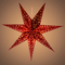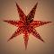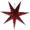 Hvězda vánoční sedmicípá Materiál: Směs papíru a bavlny Sametový povrch Barva červená 10LED Barva světla: teplá bílá Napájení: 3xAA Časovač: 6/18 h Průměr hvězdy: 60cm Baterie nejsou součástí balení