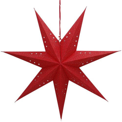 Hvězda vánoční sedmicípá Materiál: Směs papíru a bavlny Třpytivý posyp zlaté barvy Barva červená 10LED Barva světla: teplá bílá Napájení: 3xAA Časovač: 6/18 h Průměr hvězdy: 60cm Baterie nejsou součástí …