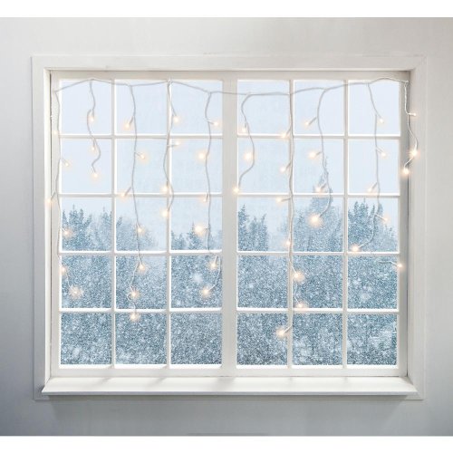Vánoční závěs na římsu 160 LED Celková délka kabelu: 8,2 m Délka osvětleného kabelu: 3,2 m Délka přívodní šňůry: 5 m Počet LED: 160 Barva světla: teplá bílá Pro vnitřní i venkovní použití Krytí: IP 44