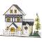 Motiv: zasněžený domek s rozsvícenými okny Celkový efekt doplňuje sněhulák a osvětlený stromek Rozměry 18 × 10 × 14 cm