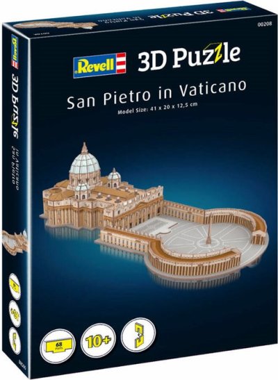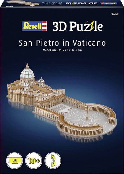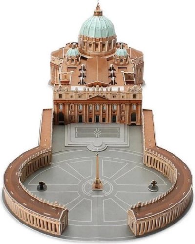 Poskládejte si 3D model Bazilika Sv. Petra. Balení obsahuje dílky vyrobené z pěny potažené laminovaným potištěným papírem. Při skládání nejsou potřeba nůžky ani lepidlo. Jednotlivé části je třeba vyloupnout z archu a zacvakávací metodou spojit dohromady.