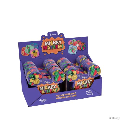 Je čas zahrát si s Mickeym, ikonou Disney světa! Bouřlivou hru s ovocem si užijete, ale pozor na protihráče…Dostaňte jako první všechny své karty do ovocného košíku a zvolejte „MICKEY CHAOS!“, pokud se vám toto podaří, vítězíte. Tato hra se nehraje na kola! Všichni hrají najednou, stačí úspěšně vložit vlastní kartu do košíku. Ovocný košík začnete tak, že doprostřed hrací plochy umístíte jednu kartu lícem nahoru. Pokud vidíte shodu, rychle ji oznamte a položte svou kartu do košíku (na hromádku). Shoda může nastat ovocem, barvou a číslem. Jsou zde i chytáky, pozor na ně! Kolo vyhrává hráč, který umístí všechny své karty do ovocného košíku, vítězem hry se stává ten, kdo vyhraje tři kola. Chcete méně chaosu? Hrajte jen na shodu ovoce! Tato varianta je perfektní pro menší děti.Hra pro přátele, rodinu a milovníky Disney, od 6 let pro 2-6 hráčů, průměrná hrací doba 15 minut. Návod v angličtině.Tištěno inkousty na rostlinné bázi na FSC papír. Zabaleno v kovové krabičce ve tvaru Mickeyho, která je recyklovatelná. Hlavní vlastnosti: pro 2–4 hráčůhrací doba cca 15 minutpraktické a atraktivní balení Zkrácený návod:Dostaňte jako první všechny své karty do ovocného košíku a zvolejte „MICKEY CHAOS!“, takto vyhrajete tuto rychlou karetní hru. Zamíchejte balíček a jednu kartu položte doprostřed hrací plochy lícem nahoru, takto založíte první ovocný košík. Karty z balíčku rozdejte hráčům, ti si pak vytáhnou tři karty z vlastního balíčku karet. Nehraje se na kola! Všichni hrají najednou, stačí úspěšně vložit vlastní kartu do košíku. Všichni hráči porovnají kartu na hromádce s kartami na ruce, snaží se najít shodu. Pokud shodu najdete, rychle ji oznamte a položte svou kartu do košíku (na hromádku). Shoda může nastat ovocem, barvou a číslem. Jsou zde i chytáky, pozor na ně! Kolo vyhrává hráč, který umístí všechny své karty do ovocného košíku, vítězem hry se stává ten, kdo vyhraje tři kola. Chcete méně chaosu? Hrajte jen na shodu ovoce! Tato varianta je perfektní pro menší děti. Obsah balení:64 Mickey ovocných karet4 karty mix ovoce4 karty zmrazení3 karty nového košíku1 karta prázdné rukynávod EN, FR, IT, DE, ES