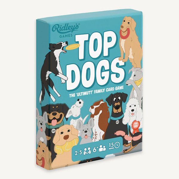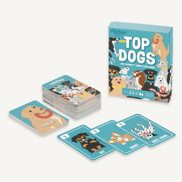 Krásně ilustrovaná kreativní hra obsahuje 96 hracích karet. Je ideální od 6 let, pro 2 až 5 hráčů a má průměrnou dobu hraní 15 minut. Kdo dostane za své triky nejvíce pamlsků? Máte 2 kola na to, abyste jich vyhráli co nejvíce. Začínáte s 9 kartami triků. Každá karta má bodovou hodnotu, hráči se tak musí rozhodnout, kterou z 9 karet triků zahrají, aby měli šanci získat nejvíce oceněné pamlsky. Můžete za aport získat pohlazení po hlavě? Nebo za panáčkování šťavnaté klobásy? Vyčenichejte tu nejlepší kartu, která trumfne všechny ostatní triky! Stanete se nejlepším psem nebo budete posláni do boudy?Hra Top Dogs neboli Nejlepší psi má snadná pravidla a hraje se rychle. Bude skvělým dárkem pro milovníky psů. FSC papír potištěn netoxickými barvami na bázi vody. V balení návod v angličtině. Firma Ridley's Games vymýšlí originální a kvalitní hry, puzzle a hračky, které podnítí představivost, zaženou nudu a otevřou dětem svět zábavy. Hlavní vlastnosti: 2-5 hráčůpro milovníky psůFSC papírpotištěno netoxickými barvami na bázi vody