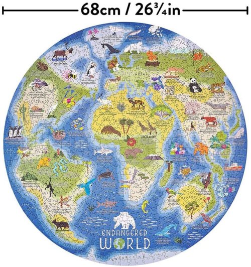 Toto nádherně ilustrované 1000dílné kruhové puzzle s ohroženými druhy představuje nejohroženější druhy na světě a hrozby, kterým čelí ve svých prostředích. Objevte více než třicet ohrožených zvířat a životní prostředí z celého světa, od ledního medvěda a méně známého addaxe po papuchalka a severní Atlantik. Když si poskládáte tuto úžasnou skládačku, dozvíte se něco více o každém zvířeti a prostředí spolu s výzvami, kterým čelí. Unikátní kruhový formát umožňuje snazší spolupráci kolem stolu. Puzzle je dodáváno v papírovém obalu, aby nebylo nutné používat jednorázové plastové obaly. Jakmile složíte puzzle, proč neudělat další průzkum a neprozkoumat, zda existují způsoby, jak se zapojit? Hlavní vlastnosti: Obsahuje 1000 dílkůPotištěno netoxickými inkoustyPrémiová kvalita puzzleJednotlivé dílky do sebe přesně pasujíRozvíjí logické myšlení a motoriku