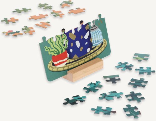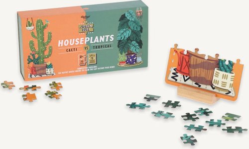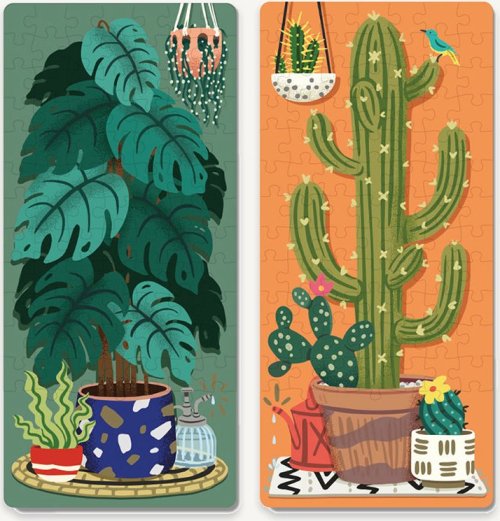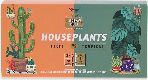 Soutěžní puzzle pro dva - to je puzzle Duel od Ridley's Games. Skládačku však může úspěšně dokončit pouze ten rychlejší z vás. Soutěží se totiž o poslední dílek, který je oboustranný a společný pro obě puzzle. Nejdříve si vyberte svou oblíbenou rostlinu (kaktus nebo monsteru), odstartujte závod a pusťte se do skládání. Vítězem se stává ten, kdo jako první poskládá své puzzle a vloží do něj poslední dílek. Ideální pro všechny, kteří si chtějí zaskládat i zasoutěžit.. Součástí balení jsou dvě barevné předlohy skládaného motivu a dřevěný stojánek, který drží poslední vytoužený dílek. Balení je zcela bez plastových obalů. Rozměr složeného puzzle cca 12 x 26 cm