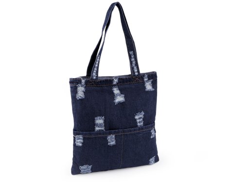 Větší riflová taška je praktická, oceníte ji na každodenní nošení. Je velice kvalitní, z hrubého bavlněného plátna. Taška se uzavírá na zip. Uvnitř má kapsu na drobnosti. Má ucha do ruky, která se dají nosit i na rameni. Taška č.1 a 4 má na přední straně 1 kapsu. Taška č.2 a 3 má na přední straně 2 kapsy. Taška č.5 a 6 se zapíná na přezku s patentem, je větší než ostatní varianty, s rozšířeným dnem. Na přední straně má 1 kapsu.