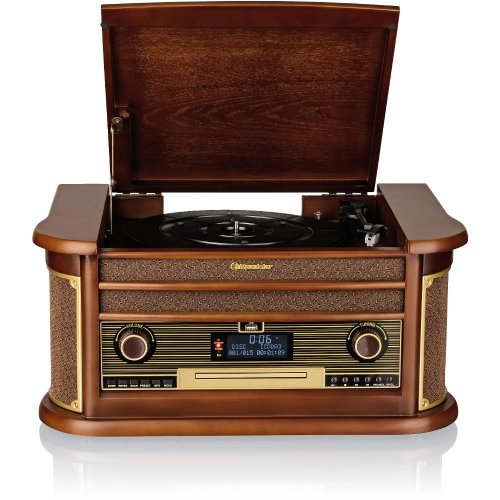 Retro dřevěné provedení Tuner: analogový FM a digitální DAB/DAB+ Přehrává: CD, Kazeta, LP, USB flash disk Přehledný LED displej Dokáže ripovat LP desky do MP3 - vše probíhá automaticky bez nutnosti použití PC Bluetooth streamování hudby Rychlost: 33/45/78 otáček za minutu Reproduktory o výkonu 2× 2,5 W Manuální ovládání Připojení a funkce: Bluetooth, digitalizace vinylů Součástí balení: dálkové ovládání a integrované reproduktory