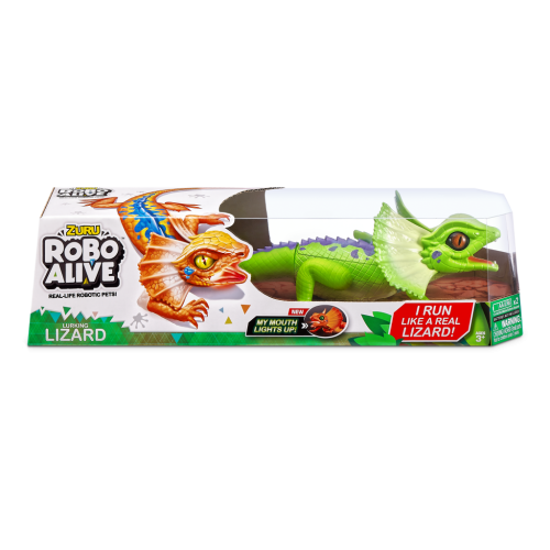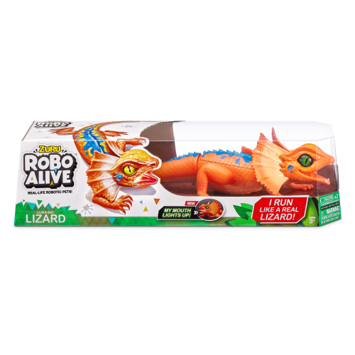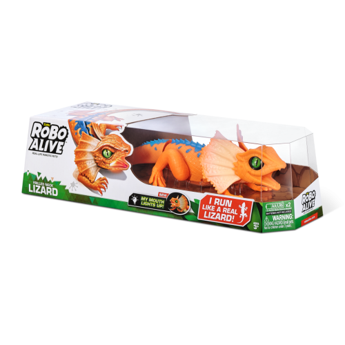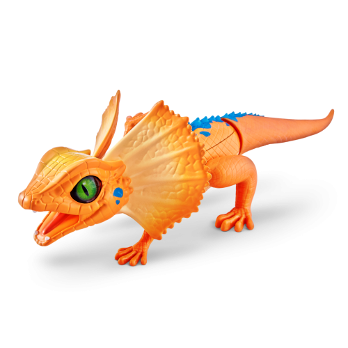 Robo Alive Robotická oranžová ještěrka. Oranžová ještěrka s modrými skvrnami vypadá jako živá. Může skutečně chodit, běhat a pohybovat hlavou.