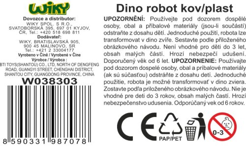 Robot dino 2v1. Materiál kov/plast. Rozměry 7x3x10 cm. Obrázkový návod na sestavení součástí. Více variant.