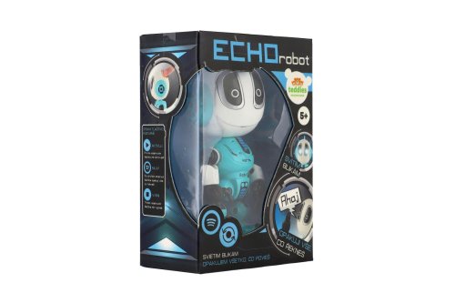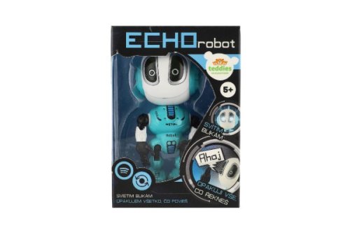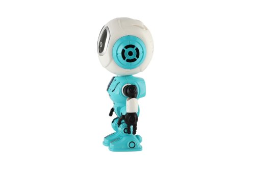 Robot modrý opakuje vše, co řeknete. Stiskem tlačítka zapnete, dalším stiskem můžete začít mluvit, a stejným tlačítkem také vypnete. Svítí a bliká a je velikosti 12 cm. Baterie 3x AG13 jsou součástí výrobku. Rozměry balení 10,5 x 15 x 5,5 cm Vhodné pro děti od 5 let
