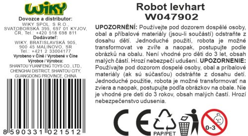 Robot levhart Metabeast. Rozměry 10x4x14 cm. Robot se může složit na levharta. Obsah balení - robot, zbraně. 2 varianty: žlutá, šedá