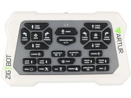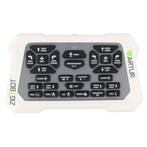 Potomek ovládá Artura IR dálkovým ovladačem. Robota nabijete pomocí vestavěné baterie a USB napájecího kabelu.