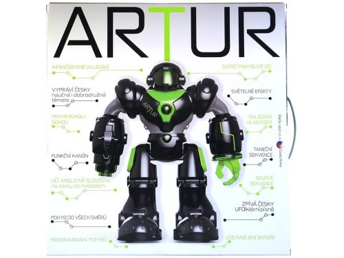 Artur má celkem 28 různých funkcí. Mluví česky a vypráví vašemu dítěti, jak se svými přáteli zatopil lordu Smogovi. Sada anglických slovíček s českým překladem učí vašeho potomka angličtinu a rozšiřuje jeho slovní zásobu. Robot hýbe rukama a nohama a jeho pohyblivé oči svítí. Funkční kanón střílí plastové střelky. Světelné efekty, taneční a bojové sekvence a písničky robota vaše dítě nadchnou.