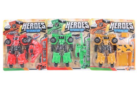 Plastový skládací robot o rozměru cca 16 x 11 cm. Po složení je z něj stavební auto. PŘI ZAKOUPENÍ VŠECH 3 DRUHŮ,MŮŽETE SESTAVIT VELKÉHO ROBOTA.Rozměr balení cca 21,5 x 25 x 4 cm. Věk 6+