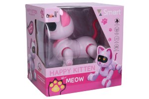 Robotická kočka RC na dálkové ovládání. Rozměry 21x18x13 cm. Infračervený port. Bateriový pack 3.7V 400mAh Li-ion do kočky, 2xAAA do ovladače nejsou součástí. USB kabel součástí. Přepínač ON/OFF v zadní části hlavy. Reaguje na dotyk hlavy. Ovladač - pohyb, demo, programování (až 30 kroků), nastavení hlasitosti.