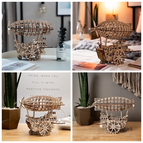 Jako z románů Julese Vernea. Stavebnice vzducholodi z překližky. Je vybavená natahovacím pružinovým pohonem, schopná samostatné jízdy. Nabízí originální steampunkový design s velkým množstvím podrobností, z nichž velká část je mechanické povahy, například vrtule. Jedinečný dárek pro všechny milovníky kutilství, luxusní interiérová dekorace do pokoje či kanceláře. Skládačka je dodávána v nesloženém stavu, balena v krabici. Vybaveno detailním návodem k sestavení. Hlavní vlastnosti:229 precizně vyřezaných dílkůvysoká obtížnost sestavenívýsledný model je schopný samostatné jízdymnožství mechanických detailů