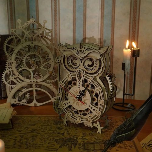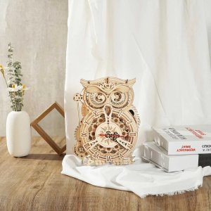 Je nutno bedlivě sledovat čas? Stavebnice hodin s minutkou vyrobená z překližky. V podobě sovy neujdou pozornosti, celková podoba je navíc příhodně doplněna mechanickými detaily. Konstrukce umožňuje nahlížet nejen na chod kyvadla, ale i na práci únikového mechanismu a soukolí. Plně funkční hodiny jsou však poháněny elektricky a natahovací mechanismus minutky vybavené signalizací slouží jako atraktivní doplněk, nabízí maximální rozsah třicet minut. Jedinečný dárek pro všechny milovníky kutilství, luxusní interiérová dekorace do pokoje či kanceláře. Skládačka je dodávána v nesloženém stavu, balena v krabici. Vybaveno detailním návodem k sestavení. Hlavní vlastnosti:elektrické hodiny s natahovací minutkou161 precizně vyřezaných dílkůstřední obtížnost sestaveníhodiny napájeny AA bateriíminutka opatřena signalizacírozsah minutky 1–30 minut