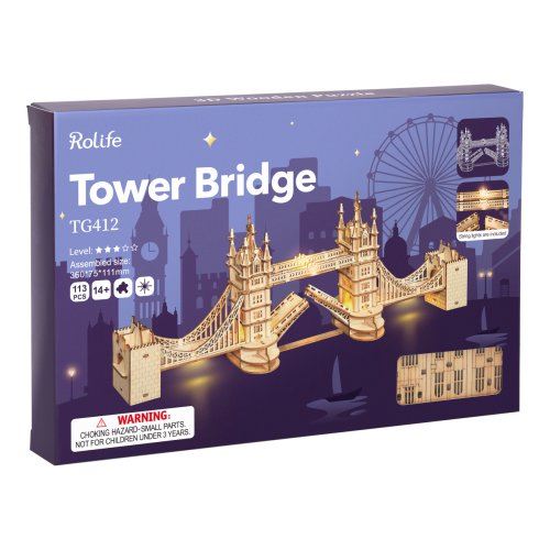 Poznejte Londýn prostřednictvím stavebnic jeho nejikoničtějších architektonických dominant. Atraktivně osvětlené miniatury hravě přenesou atmosféru nočního života evropské metropole do Vašeho pokoje. Nechejte se unést jejich detaily a dovolte jim prozářit Vaši vitrínu, či polici!Stavba obnáší pouze sestavování dílů vyřezaných z překližky a snadnou montáž předem připravené sady LED osvětlení. To je napájeno knoflíkovými bateriemi (3×LR44), které nejsou součástí balení. Dodáváno v kartonové krabičce s detailním návodem k sestavení. Hlavní vlastnosti: 113 precizně vyřezaných dílůstřední obtížnost sestaveníLED osvětlení (3×LR44 baterie nejsou součástí balení)