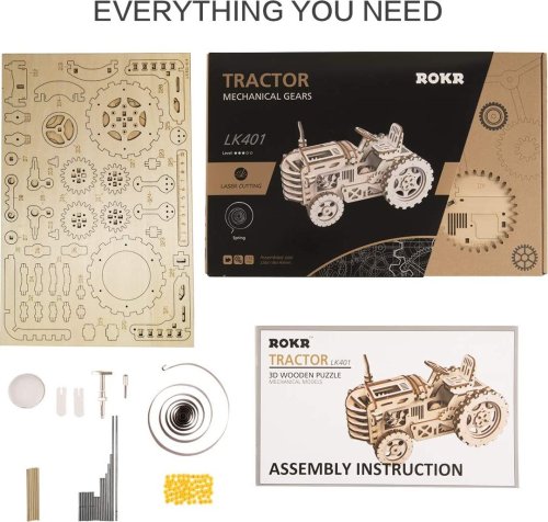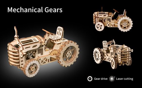 Nechte se odvézt do širých polí, daleko od chaosu a ruchu. Stavebnice traktoru z překližky. Jedná se o robustní a odolné vozidlo vybavené natahovacím pružinovým pohonem, schopné samostatné jízdy. Kapotu lze odklápět a pozorovat pohyb převodového soukolí. Otáčením volantu můžete měnit směr jízdy. Model zdobí realistické detaily, jako je sedadlo nebo výfuk. Skládačka je dodávána v nesloženém stavu, balena v krabici. Vybaveno detailním návodem k sestavení. Hlavní vlastnosti:135 precizně vyřezaných dílkůstřední obtížnost sestavenívýsledný model je řiditelný a schopný samostatné jízdy