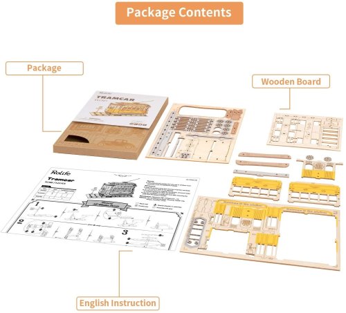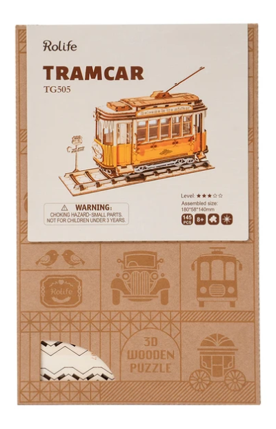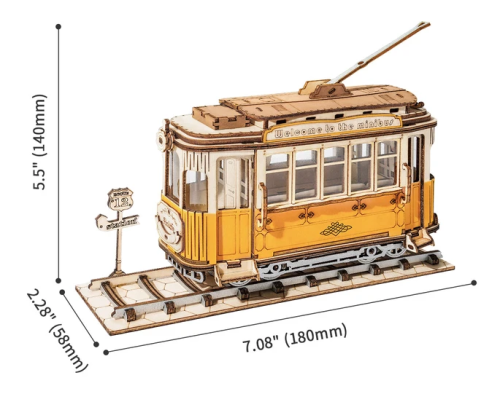 Detailní model historické tramvaje. Patří do řady skládaček, které jsou určeny k vystavení, nejsou interaktivní a nemají žádné pohyblivé díly. Skládačka je dodávána v nesloženém stavu, balena v krabici. Vybaveno detailním návodem k sestavení. Hlavní vlastnosti:145 precizně vyřezaných dílkůstřední obtížnost sestavení