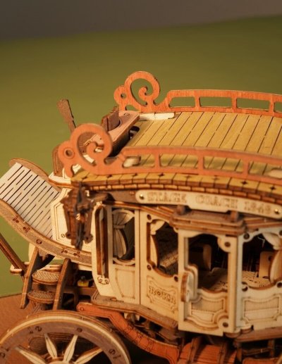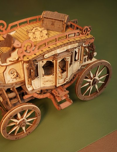 Tento krásný kousek je inspirován typickými dostavníky dané doby. Originální zdobný vzhled je doprovázen řadou praktických funkcí - robustní odolná karoserie, obrovská kola a přívětivý prostor, jenž pojme všechna Vaše zavazadla. Laserem vyřezávané dílky z 2 mm lipové překližky. Jednotlivé dílky se vytlačují přímo z překližky, postupujte posloupně a opatrně. Kvalitní, bezpečné a netoxické materiály. Rozvíjí technické myšlení, představivost, cit pro detail a jemnou motoriku. Překrásný dárek pro větší děti i dospělé. Po dokončení působivá dekorace.