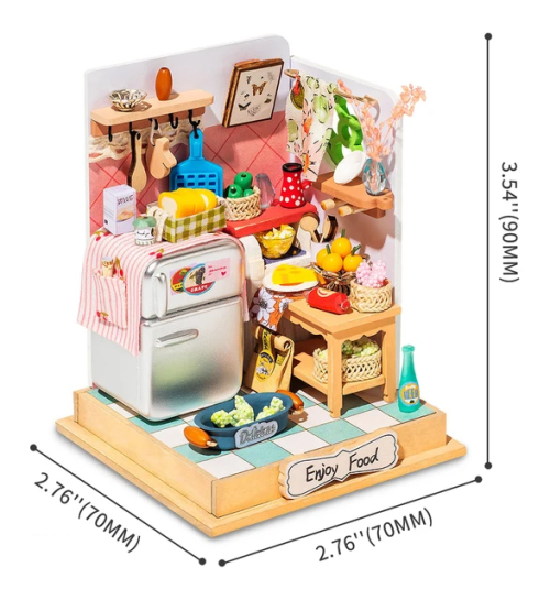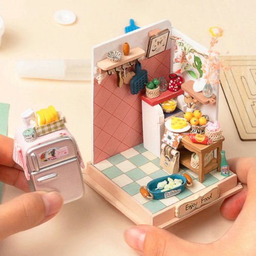 Vychutnejte si přehlídku barev, vůní a chutí v atmosféře domácké kuchyně. Objevte svět detailních miniatur Robotime přicházejících v podobě jedinečných výtvarných stavebnic. Při jejich sestavování strávíte příjemné chvíle a výsledkem můžete zkrášlit zákoutí svého pokoje. Výtvarné sady jsou rozděleny hned do několika různých řad a tvoří výjimečně pestrou nabídku. Je Vám bližší obytný prostor, podnik, nebo něco jiného? Snadno si vyberete! Každá ze stavebnic je dodávána v rozloženém stavu. Stavba zahrnuje převážně barvení a lepení již nařezaných dílů z překližky, přípravu kartonových nebo látkových prvků a papírových potisků. V balení spolu se všemi součástmi a podrobným návodem naleznete lepidlo, barvy, štětec i jiné nástroje. K pohodlné stavbě doporučujeme přichystat si půlkulaté kleště. Zpravidla si při sestavování a úpravách ale vystačíte s obyčejnými nůžkami, které doma jistě vždy najdete. Hlavní vlastnosti:obsahuje díly stavebnice, lepidlo, barvy, štětec aj.odhadovaná doba sestavení 5 hodinstavba vyžaduje vlastní nůžky a může obnášet i použití dalšího drobného nářadí