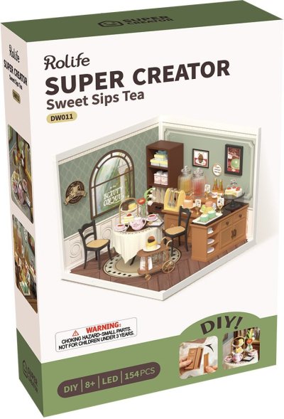 Objevte kouzlo Rolife Sweet Sips Tea , nejnovějšího přírůstku do oblíbené série Super Creator od Rolife . Tento detailně propracovaný model miniatury přináší atmosféru klidu a elegance – jemné pastelové tapety, krajkové ubrusy a antické čajové soupravy vytvářejí dokonalé prostředí pro relaxaci. Vychutnejte si vůni čerstvě uvařeného čaje a vybírejte z lahodných zákusků na pojízdném servírovacím stolku. Tento miniaturní obchod s čajem nabízí realistické detaily, jako je jemný porcelán, starožitné židle, křišťálové džbánky na šťávu a elegantní dárkové krabičky. Sestavení Rolife Sweet Sips Tea je nejen zábavné, ale také uklidňující. Tento kreativní projekt je ideální jako originální dárek nebo jako jedinečný doplněk do vaší sbírky miniatur. Vytvořte si svůj vlastní kousek klidného ráje s Rolife Sweet Sips Tea – dokonalou kombinací kreativity a elegance.