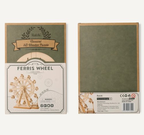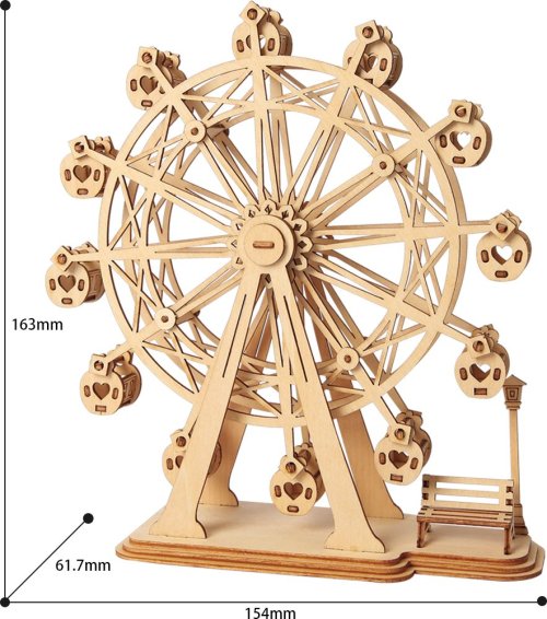 Detailní model známého kolotoče. Patří do řady skládaček, které jsou určeny k vystavení, nejsou interaktivní a nemají žádné pohyblivé díly. Skládačka je dodávána v nesloženém stavu, balena v krabici. Vybaveno detailním návodem k sestavení. Hlavní vlastnosti:120 precizně vyřezaných dílkůnízká obtížnost sestavení