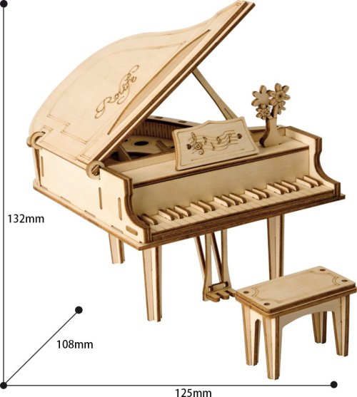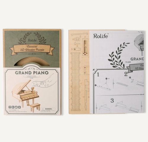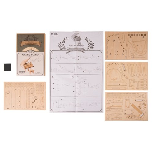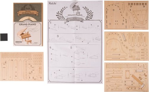 Detailní model hudebního nástroje. Patří do řady skládaček, které jsou určeny k vystavení, nejsou interaktivní a nemají žádné pohyblivé díly. Skládačka je dodávána v nesloženém stavu, balena v krabici. Vybaveno detailním návodem k sestavení. Hlavní vlastnosti:74 precizně vyřezaných dílkůnízká obtížnost sestavení