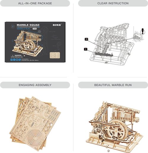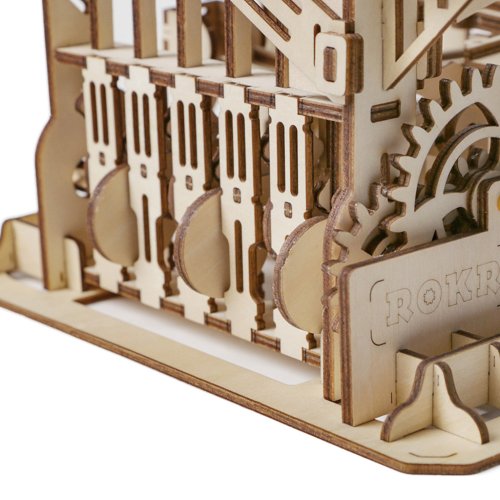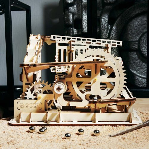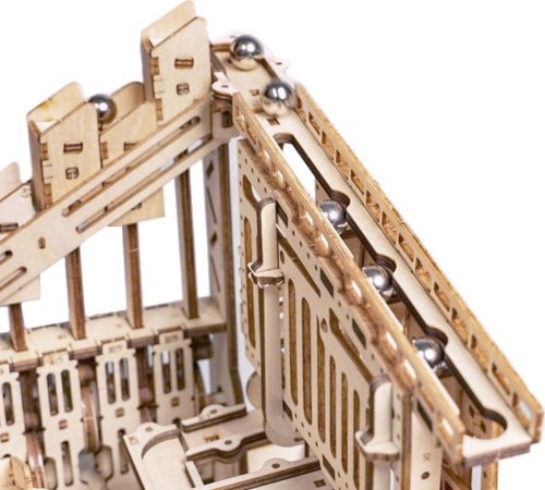 Kuličková dráha se schodišťovým výtahem a sérií propadlišť. Skládačky kuličkových drah Robotime nabízejí jinde nevídané podrobnosti a variabilitu. Každá se může pyšnit originálními funkčními detaily a roztodivnými překážkami, které často nápaditě změní dráhu kuličky, a přinášejí tak výjimečnou zábavu. Mechanika je poháněna ručním pohonem, otáčením klikou, kterým jsou také vynášeny a na cestu pravidelně spouštěny kuličky. Skládačka je dodávána v nesloženém stavu, balena v krabici. Vybaveno detailním návodem k sestavení. Hlavní vlastnosti:skládačka dráhy a 10 kuliček233 precizně vyřezaných dílkůstřední obtížnost sestavení