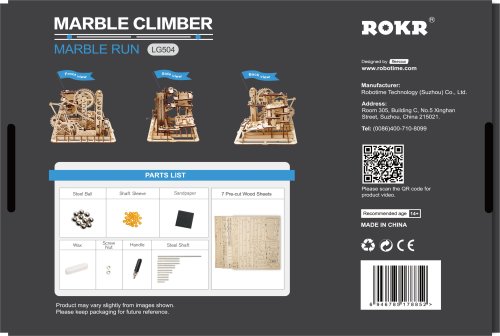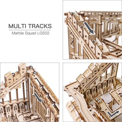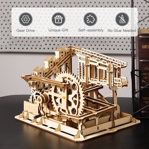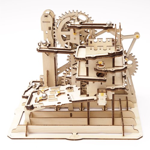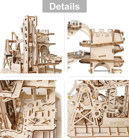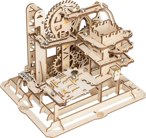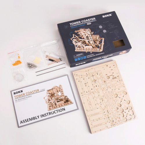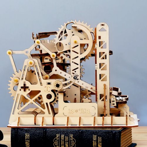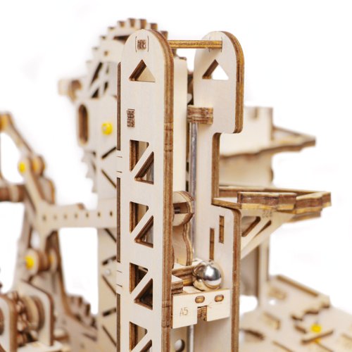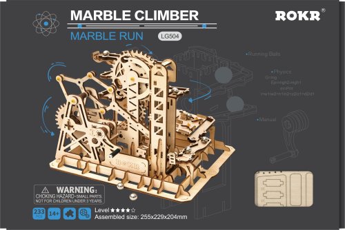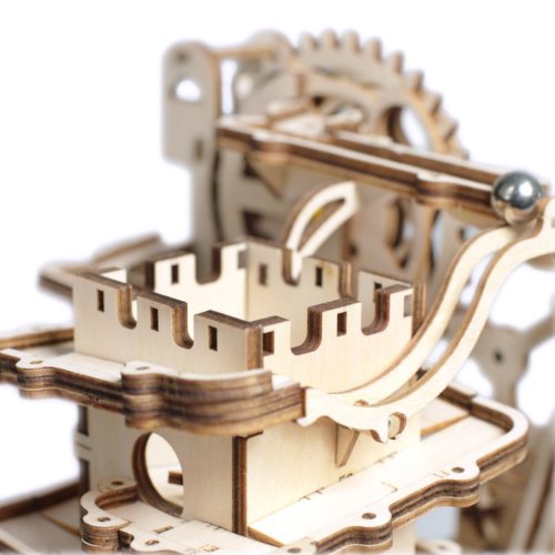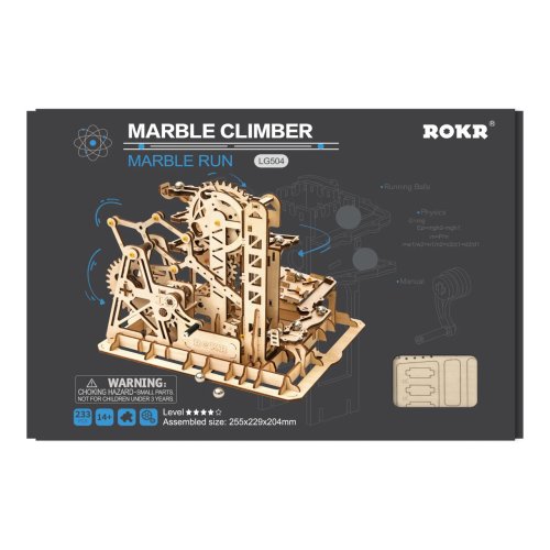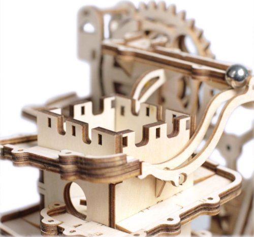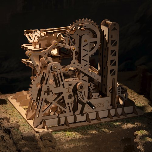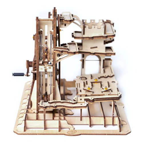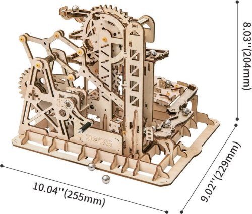 Kuličková dráha s výtahem v šachtě a překážkovou věží. Skládačky kuličkových drah Robotime nabízejí jinde nevídané podrobnosti a variabilitu. Každá se může pyšnit originálními funkčními detaily a roztodivnými překážkami, které často nápaditě změní dráhu kuličky, a přinášejí tak výjimečnou zábavu. Mechanika je poháněna ručním pohonem, otáčením klikou, kterým jsou také vynášeny a na cestu pravidelně spouštěny kuličky. Skládačka je dodávána v nesloženém stavu, balena v krabici. Vybaveno detailním návodem k sestavení. Hlavní vlastnosti:skládačka dráhy a 10 kuliček227 precizně vyřezaných dílkůstřední obtížnost sestavení