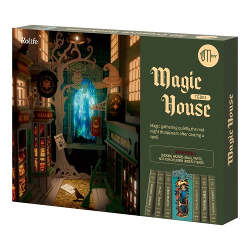 Ozvláštněte svou poličku na knihy a dodejte jí nový rozměr pomocí jedinečných tematických zákoutí. Nápaditá dioramata jsou plná kouzelných detailů dokreslujících podmanivé příběhy. Díky vestavěnému osvětlení a zrcadélku dýchají prostorem s hřejivou atmosférou. Vypravit se jejich prostřednictvím do světa fantazie je tak snadné!<br> <br> Složitostí stavby jsou tato dioramata určena pro spíše trpělivější a zkušenější modeláře. Sestavení obnáší zejména skládání dílů z překližky, lepení kartonových detailů a papírových potisků. Budete k němu potřebovat pouze nůžky, všechny ostatní potřeby jsou již součástí balení. Osvětlení pomocí LED je ovládáno moderním dotykovým spínačem a všechny jeho součásti jsou přizpůsobeny ke snadné vestavbě. Mikrotužkové baterie potřebné k napájení nejsou součástí stavebnice. Dodáváno s podrobným návodem k sestavení.<br> <br> Rozměry: 11 x 18 x 24 cm<br> Věk: 14+<br> Materiál: dřevo, karton, papír<br> Doba sestavení: 4 h<br> Počet dílů: 216<br> Baterie: 2xAAA – nejsou součástí balení